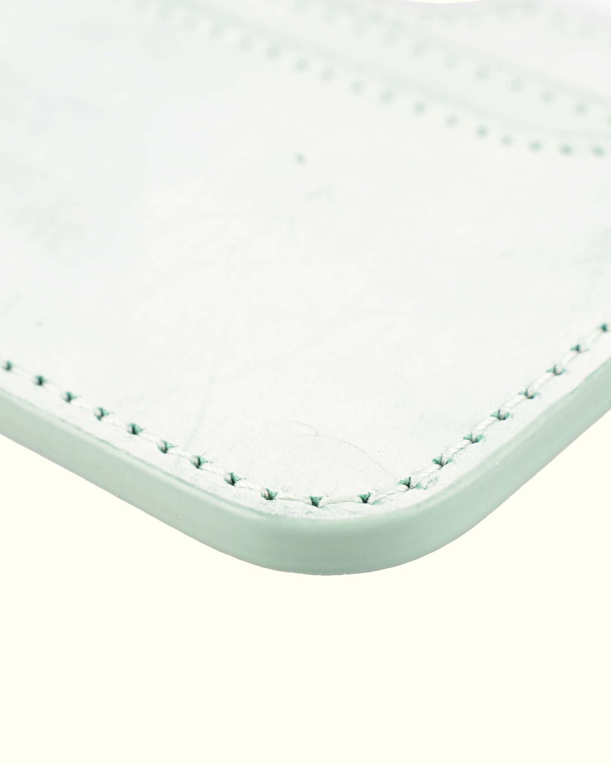 丈夫な糸とレザーの断面をきれいにコーティングする工程を経て、