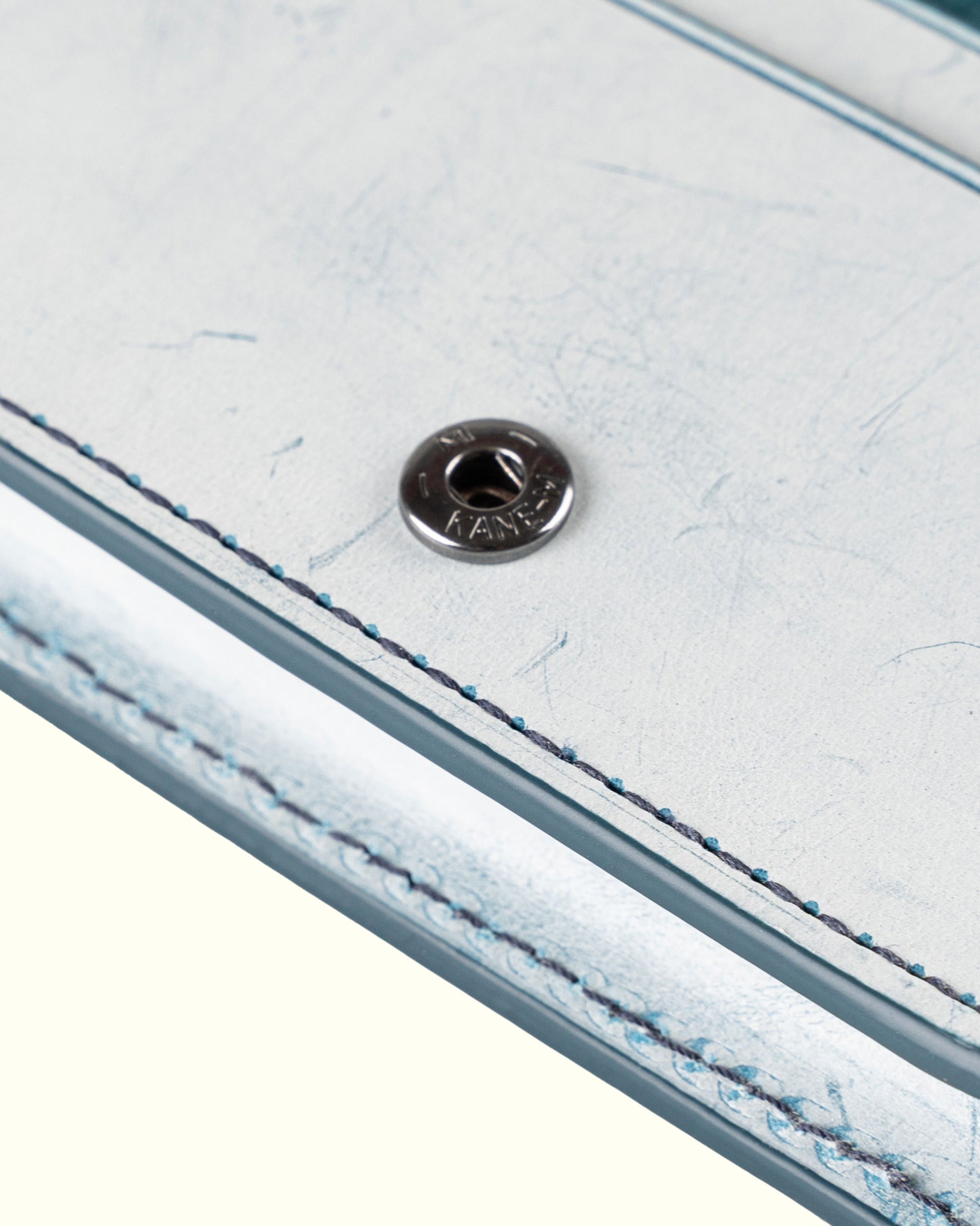 丈夫な糸とレザーの断面をきれいにコーティングする工程を経て、