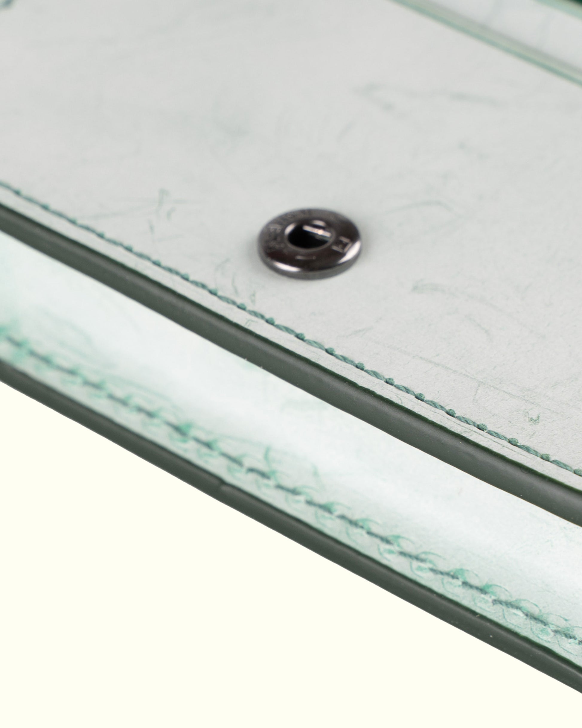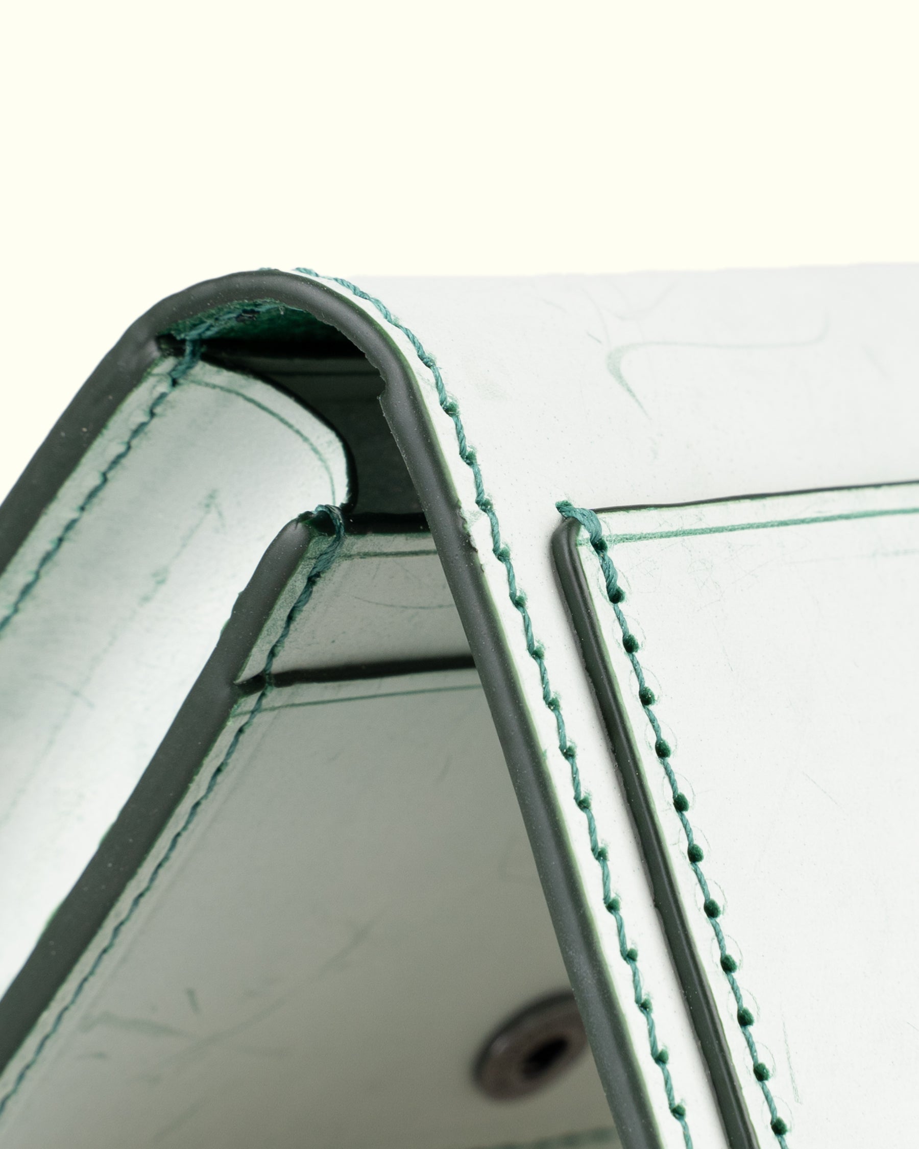 ホワイトワックスレザーは、まるで雪の中に隠れていた自然が
